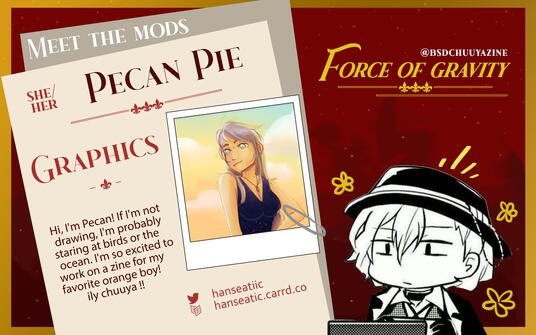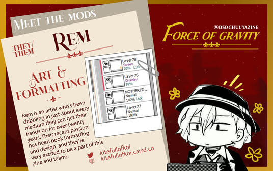 About: I actually had no idea what fandom this zine was for when I was brought in and I am super excited cause I absolutely adore Chuuya!!