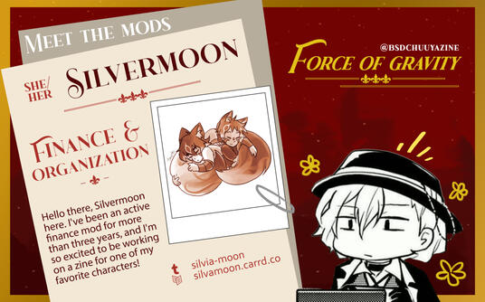 About: Hello there, Silvermoon here. I've been an active finance mod for more than three years, and I'm so excited to be working on a zine for one of my favorite characters!